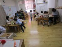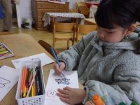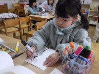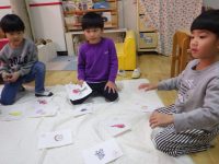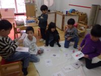 みんなで手分けして、色を塗ったり字を書いてオリジナルのかるたが完成しました♪