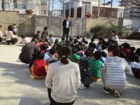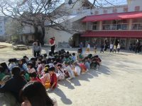 先生のお話をしっかり聞きながら、子どもたちは慌てずに避難することができました。