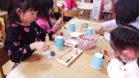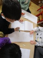 できたら先生に見てもらい、花丸をもらってとっても嬉しそうでした。