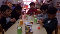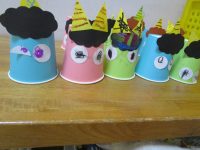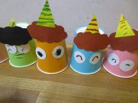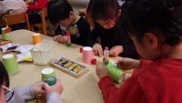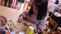 「今日は紙コップを使って、鬼をつくりますよ。」