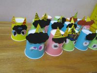 好きな色を決めたら、目、髪の毛、ツノ・・細かいパーツを貼っていきます。