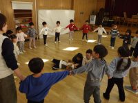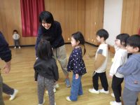門をくぐって遊ぶわらべうたや役を交代する遊び、3人1組で遊ぶ釜送りなど、みんなが大好きなわらべうたでたっぷり遊びました♪