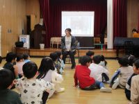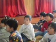 今日は、第一回目の為 年長さんは礼拝堂に集まって「小学校ってどんなところなんだろう?」と、スライドを見ながらお話を聞きました。