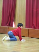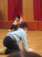 先生に、雑巾がけのコツを教えてもらい、とっても上手にできましたよ。