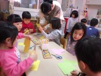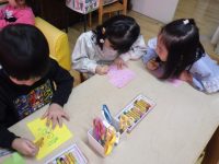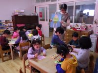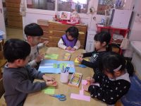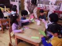 弥生幼稚園では、3学期になるとそれぞれの学年が次の学年にあがる準備をしていくために ”横クラス” の時間を設けて、ねらいをもった保育をしていきます。