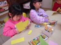 まんなかくみさんのお部屋では、今日は”凧”の製作をしました。