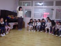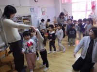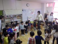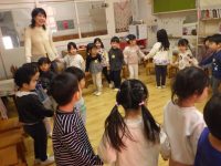 おうたにあわせて、自分の名前を呼ばれたらくるっと後ろを向いていきます。