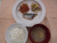 サバの味噌煮 糸こんにゃくといんげんの煮物 マカロニ和風サラダ 中華風コーンスープ