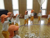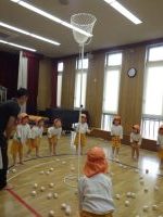 最初は2チームに分かれて玉入れ競争ですよ。