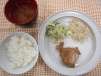 鶏肉のマーマレード焼き じゃがいものきんぴら コールスローサラダ キャベツのスープ