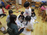 このクラスには乗り物が好きなお友だちが多く、先生の呼びかけにお友だちが集まってきましたよ。