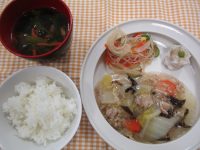 八宝菜 春雨中華サラダ 蒸しシュウマイ ほうれん草の中華スープ
