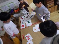 先週、「感謝祭」や「芋掘りみかん狩り」を終えた幼稚園では、果物や野菜にもっと興味を持つことができるように各クラスで様々な取り組みをしていましたよ。