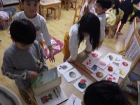 布で隠して当てっこゲームをしているクラスもありましたよ。