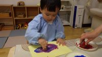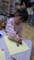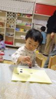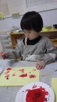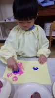 そらまめぐみさんのお部屋では、先週のお芋掘りで掘ってきた小さなお芋で”はんこ遊び”を楽しんでいましたよ。