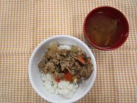 豚ごぼう丼 きのこのコンソメスープ