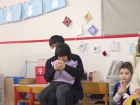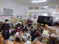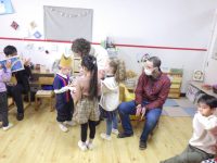 今月も、最初に礼拝堂に集まってお話を聞いたり、園長先生にお祈りをして頂き特別な時間を過ごしました。