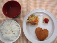 ハート型コロッケ 白菜の和え物 ポパイエッグ ミネストローネ風スープ
