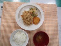 焼きそば 大根サラダ チキンナゲット 竹の子と玉葱のすまし汁