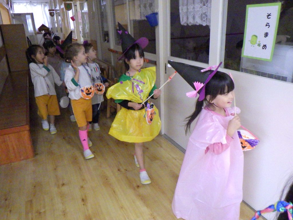 今日はハッピーハロウィンですね♪♪ あるクラスではハロウィンの仮装をしてパレードをしているお友だちがいましたよ。 おばけになったり魔女になったり・...