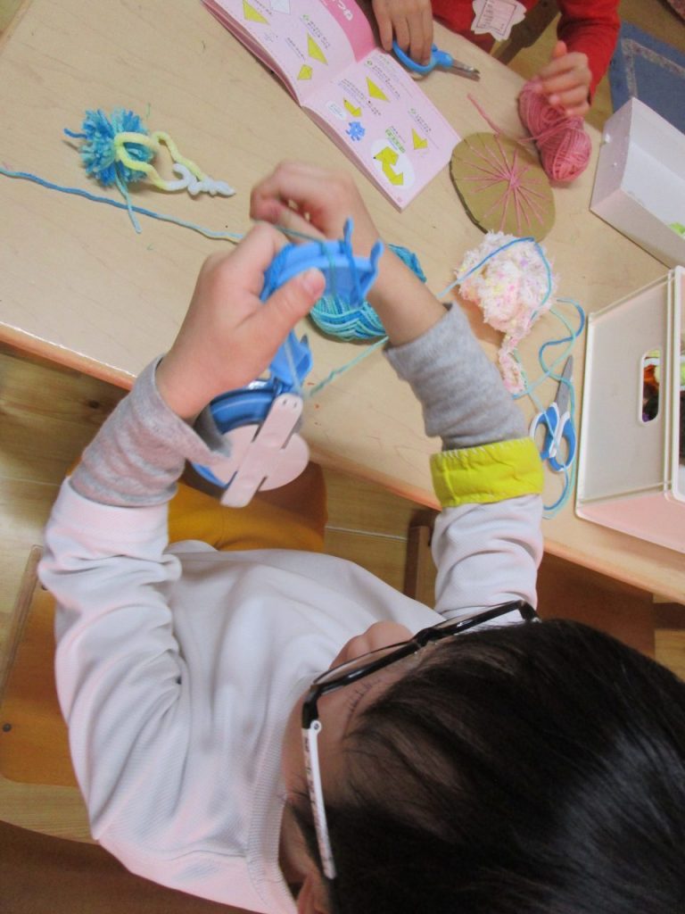 今週は、気温がぐっと下がって寒い日でしたね。 寒くなるこの季節、幼稚園では毛糸を使って製作を楽しむお友だちの姿を多く見かけるようになります。 三角の形の...