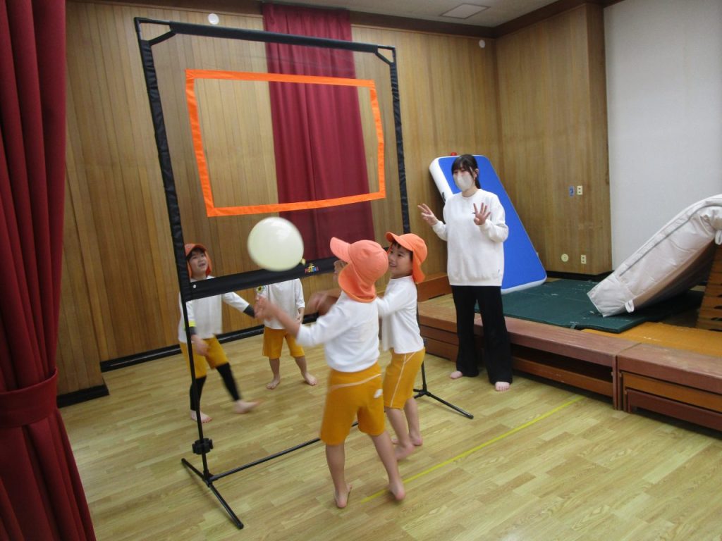 今日は火曜日、年長さんの体操教室がありました。 体操の先生が、礼拝堂に3つのチャレンジコーナーを作ってくれていました。 子どもたちは、3つのグルー...