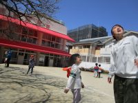 園庭の桜の木に可愛らしい花が咲き始めました。