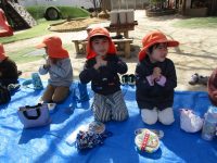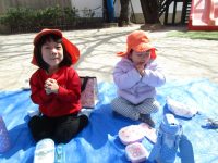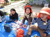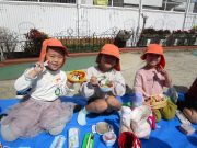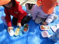 「今日のお昼ご飯はみんなで園庭で食べよう!」