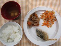 サバのゴマ味噌焼き れんこんきんぴら 人参しりしり 豆腐と椎茸のすまし汁