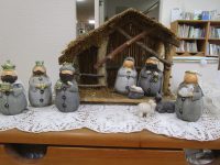 玄関と、礼拝堂には大きなツリー、そしてロビーとそれぞれのお部屋には降誕人形などのクリスマスの飾り付けを行いました。