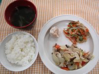 豚肉の中華炒め もやしのナムル えびしゅうまい わかめスープ