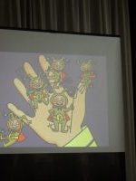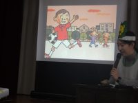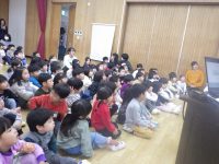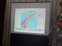 職員の方が、スライドを使って手を洗うことの大切さをわかりやすく教えて下さったり、