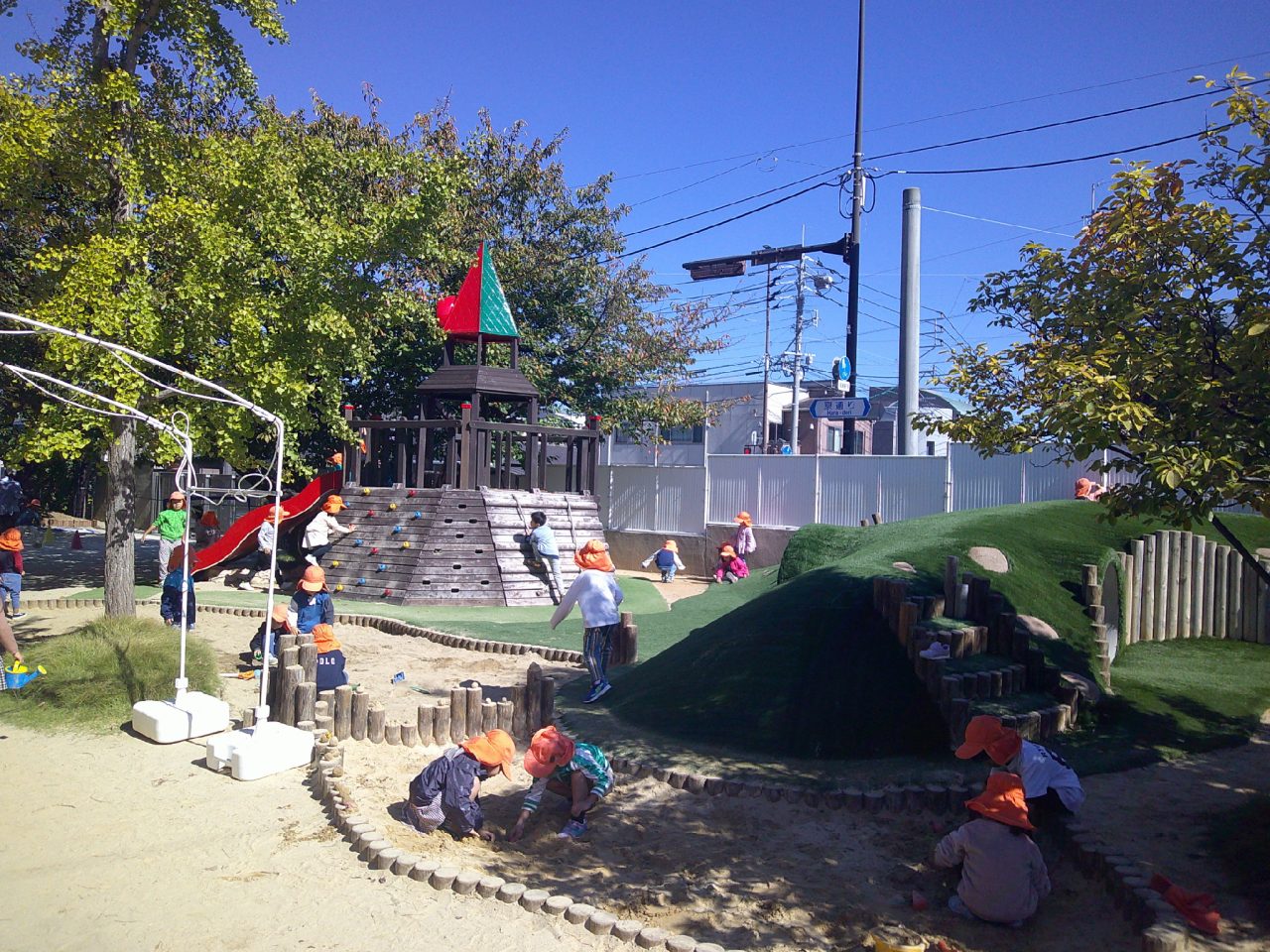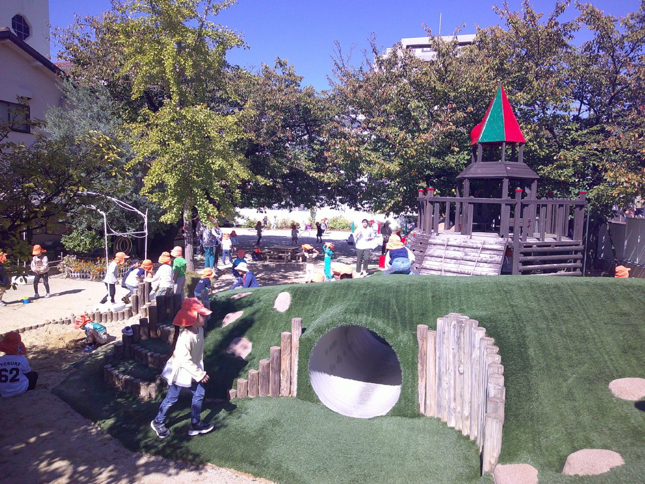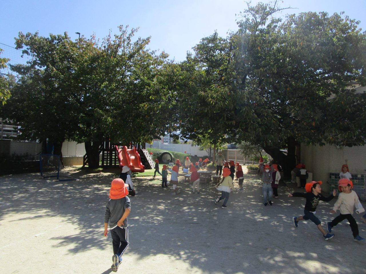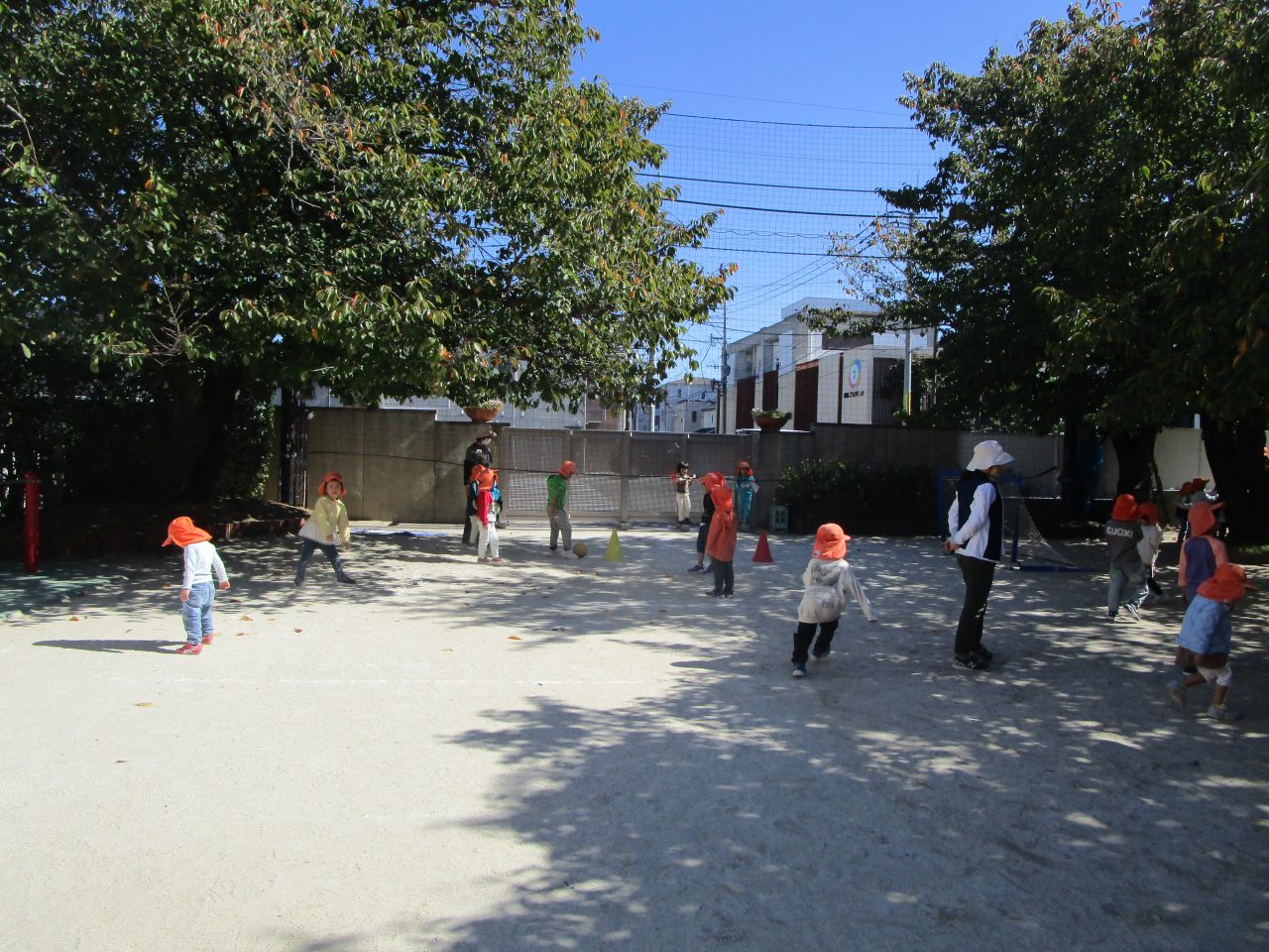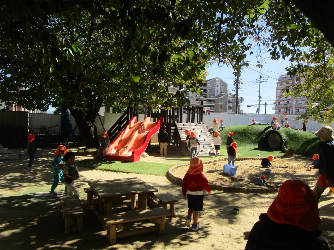 ◇日差しが強い日でも、木陰の多い園庭ですので安心して遊べます。